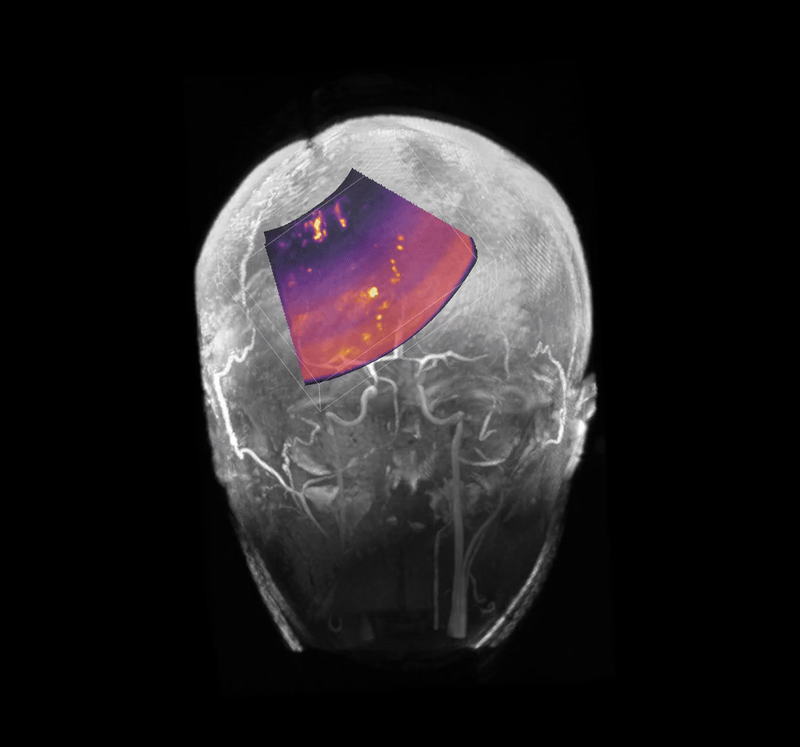 Functional ultrasound imaging is a modality for using these high-frequency waves of sound not only to see biological structures but to get a window into neural function. The physics of ultrasound and its backscatter allow us to produce an image with a resolution that is on the order of a hundred microns in width (with 100 µm being roughly the width of a human hair).